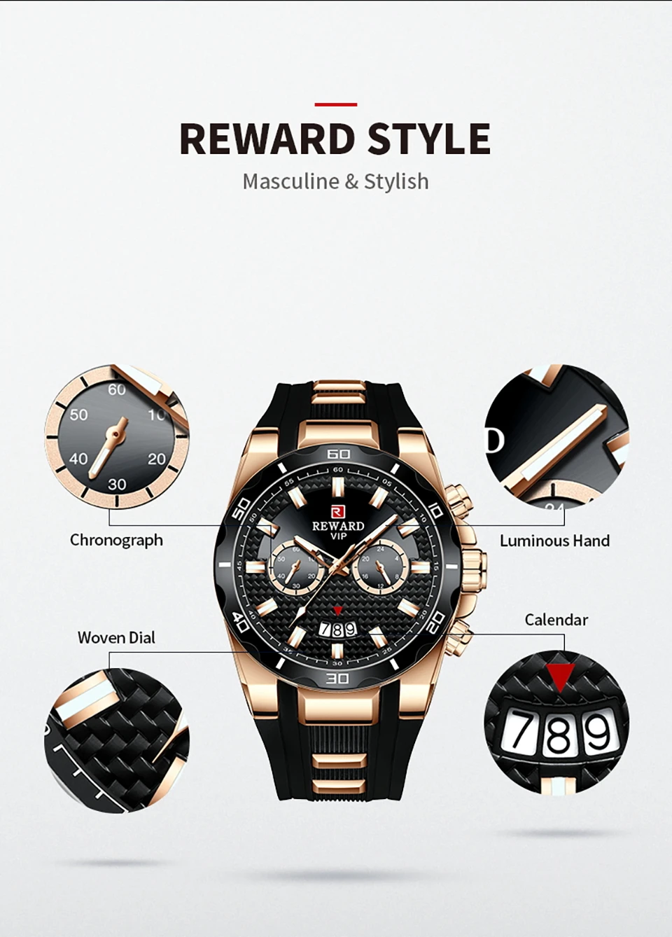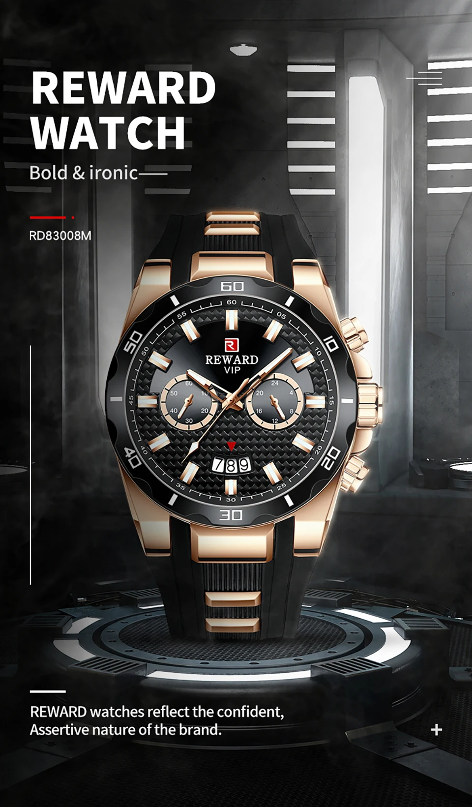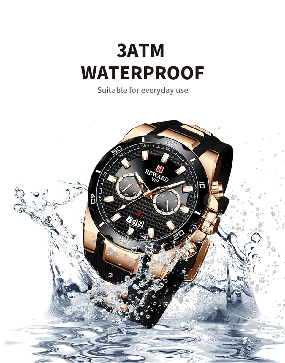 Make a bold statement with this luxury chronograph watch designed for men who value style and strength. Featuring a black dial with rose gold accents, multi-sub-dials, and a durable silicone strap, it combines elegance with performance.