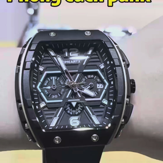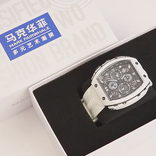 Mark Fairwhale Luxury Chronograph Quartz Watches feature a sporty silicone strap, waterproof design, and auto date function. With 3BAR water resistance, stainless steel construction, and luminous hands, they combine functionality and style. The tonneau case and 45mm dial offer a modern, elegant look for any occasion.