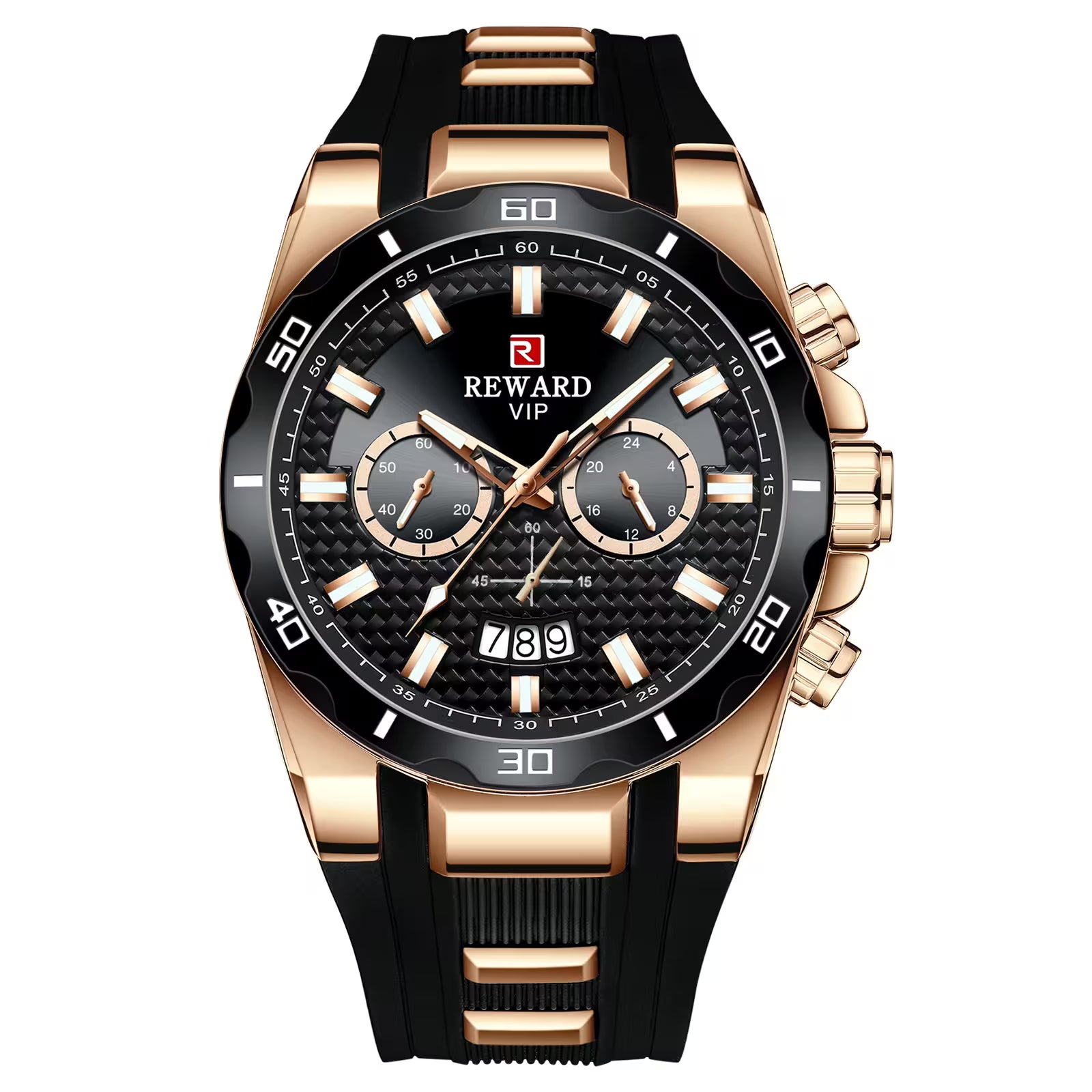 Discover the REWARD 81011 Business Men’s Watch, a perfect blend of style and functionality. With a 45mm stainless steel dial, 22cm band, and 3BAR water resistance, it’s designed for everyday durability. The Chinese quartz movement ensures precise timekeeping, making it an ideal choice for the discerning gentleman.